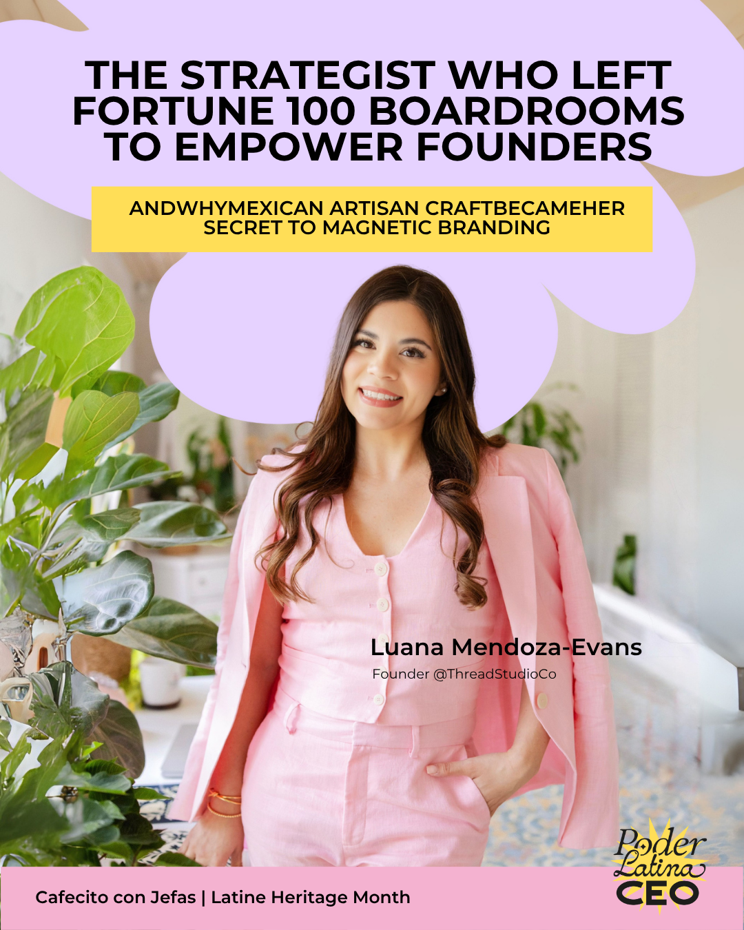 I had the honor of being featured on the Poder Latina CEO podcast with Elisa Molina for a virtual ☕ Cafecito con Jefas during Hispanic Heritage Month. We talked about my journey from that third grade classroom where I didn't speak English to the Fortune 100 boardrooms, and why I left corporate to empower founders through Thread Studio.